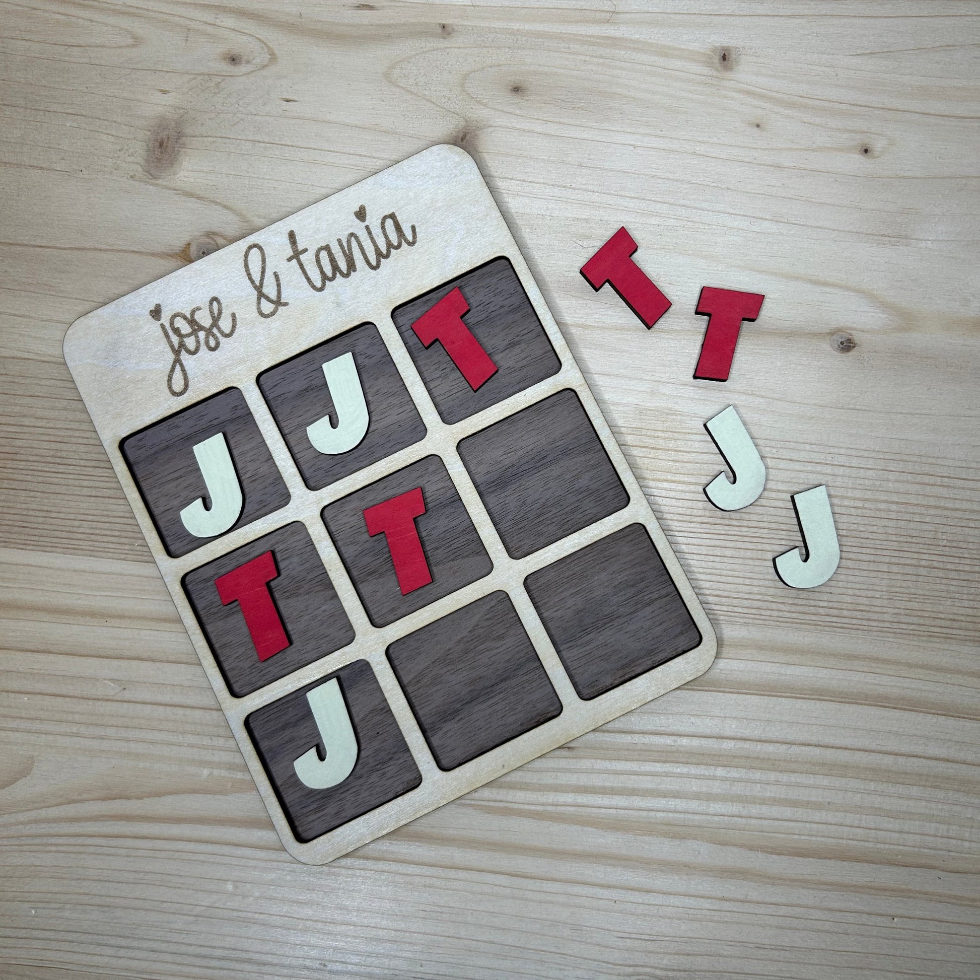 Celebra el amor este San Valentín con un regalo único: nuestro juego de tres en raya de madera personalizado.